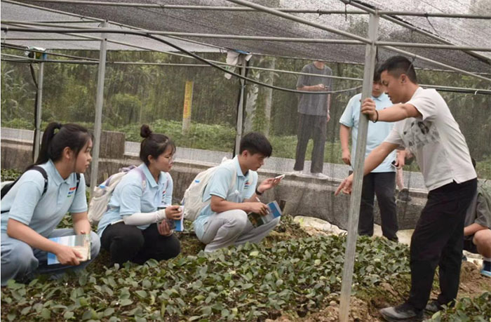 在研究院工作人員的陪同下,實(shí)踐隊(duì)成員們前往數(shù)據(jù)監(jiān)控中心、育苗基地以及育苗田地里參觀學(xué)習(xí)。從工作人員的介紹中,大家了解到育苗研究院采用科技與人工結(jié)合的模式,運(yùn)用物聯(lián)網(wǎng)5G智慧進(jìn)行育苗。園區(qū)的工作人員王禹介紹到:“2022年實(shí)現(xiàn)銷售收入4300萬元,2025年育苗收入將突破1億元,利潤超4000萬元,研究院目前已培育油茶良種苗1500萬多株,規(guī)劃2025年育苗達(dá)2000萬株。”研究院在實(shí)現(xiàn)經(jīng)濟(jì)收益增長的同時(shí),也提供了大量的崗位給附近的村民。研究院工作人員冉峰說:“我們也會(huì)招一些附近的居民從事除草、施肥等工作,帶領(lǐng)大家共同致富,努力把鄉(xiāng)村振興落到實(shí)處”。
