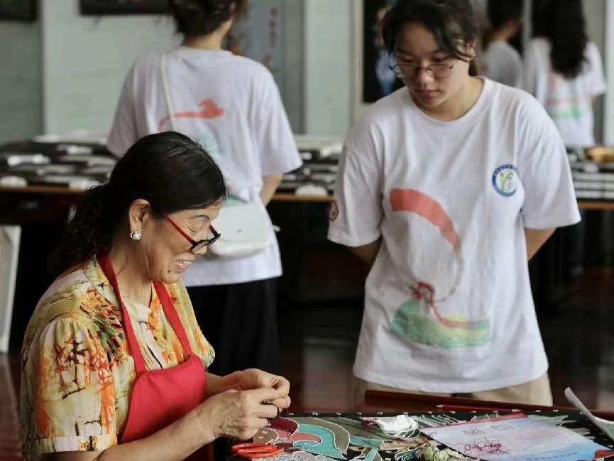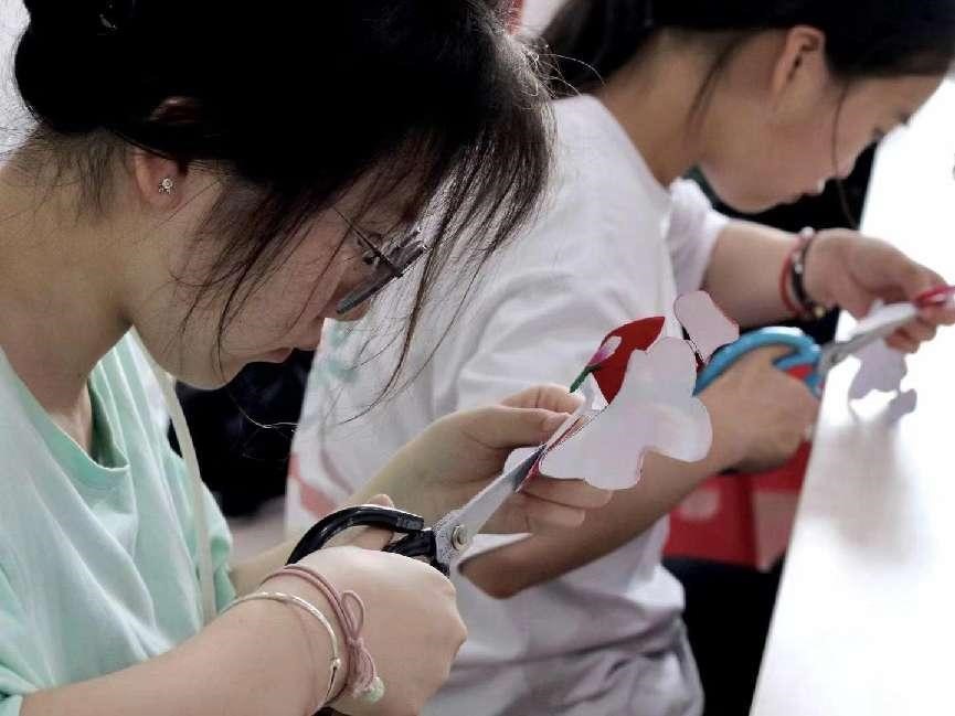 圖為實踐隊員動手參與布貼制作——剪樣。 甘樂 供圖