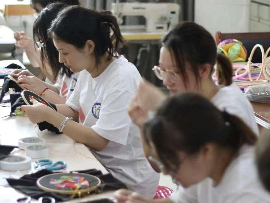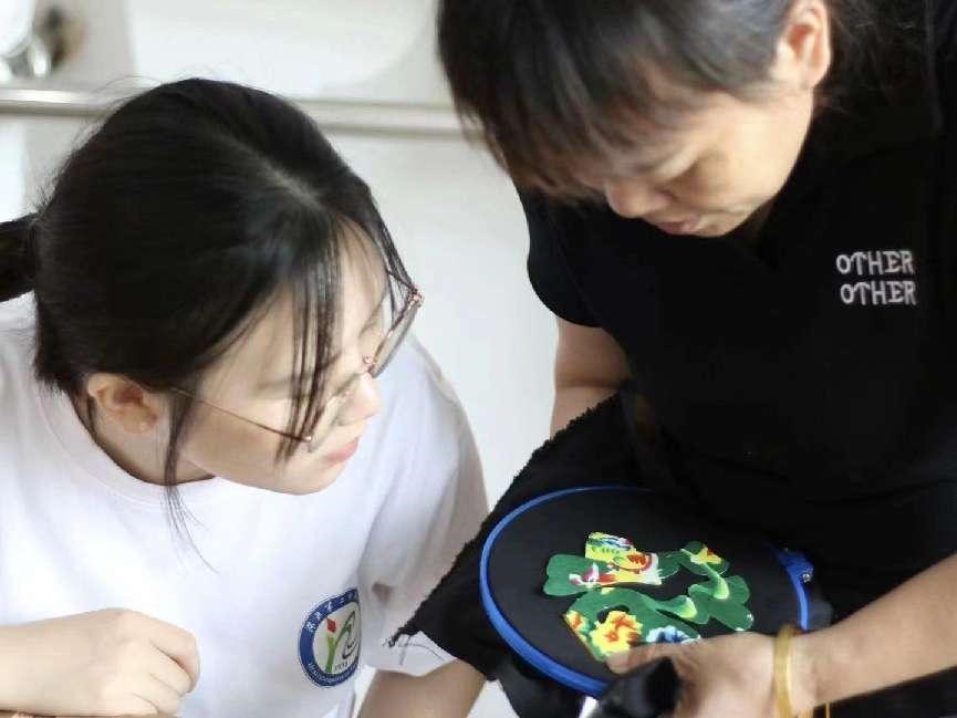 圖為陽新布貼傳承人向?qū)嵺`隊員展示縫制針法。 甘樂 供圖