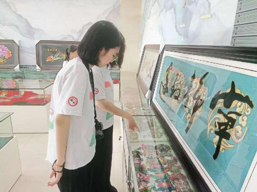 圖為實踐隊員參觀陽新文化館布貼展廳。 吳夢霖 供圖