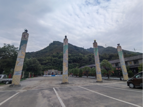 在村子里最耀眼的便是當(dāng)?shù)鼐拇蛟斓漠屪屣L(fēng)情園,占地4000平方米的廣場(chǎng)上,象征畬族四大姓氏盤、藍(lán)、雷、鐘的四根圖騰柱昂然聳立。在柱子上雕刻著鳳凰和麒麟,畬族祖先希望子孫像鳳凰那樣美麗,像麒麟那樣勇敢。傳說(shuō)畬族始祖盤瓠當(dāng)年揭皇榜平番亂有功,與高辛皇三公主成婚,生三男一女,姓氏是高辛皇所賜。獨(dú)具畬族風(fēng)情的建筑依湖而建,顯得古樸端莊,古色古香的樓臺(tái)亭榭點(diǎn)綴其中,釣魚塘、觀景臺(tái)給人清新自然的感覺(jué),在湖的沿岸,剪紙雕塑展示著畬族風(fēng)采。
