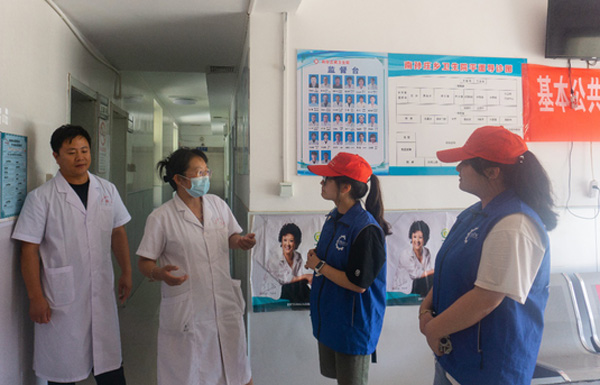 圖片為實踐隊在衛(wèi)生院與院長交流。大學(xué)生新聞網(wǎng)通訊員 邵歆彤 邵歆嘉 攝