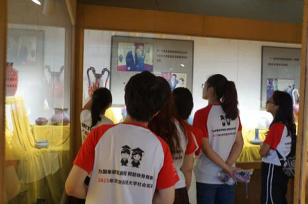圖為實(shí)踐隊(duì)參觀鈞窯作品