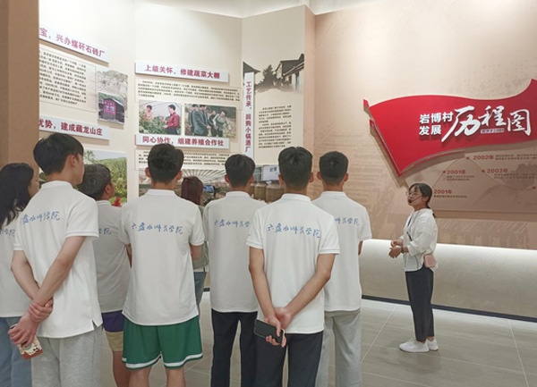 采訪結束后,團隊參觀了巖博現場教學基地,從基地展示的每件實物、每個場景、每幅畫面里真切感受到巖博村黨組織和群眾戰(zhàn)天斗地拔窮根、披荊斬棘興產業(yè)、感恩奮進謀幸福、筑夢未來創(chuàng)輝煌,讓巖博村實現鳳凰涅槃的生動故事。