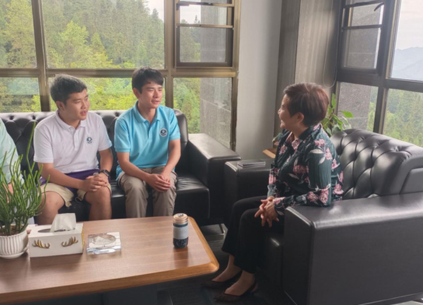 團隊采訪巖博村黨委書記余留芬(楊望紅 攝)