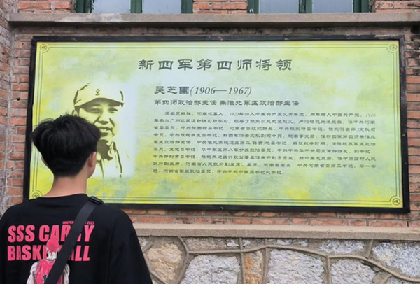 圖為團(tuán)隊(duì)成員了解新四軍重要將領(lǐng) 通訊員 趙鴻佑 提供