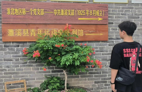 圖為團(tuán)隊(duì)成員參觀淮北第一個(gè)黨支部—中共濉溪支部 通訊員 趙鴻佑 提供