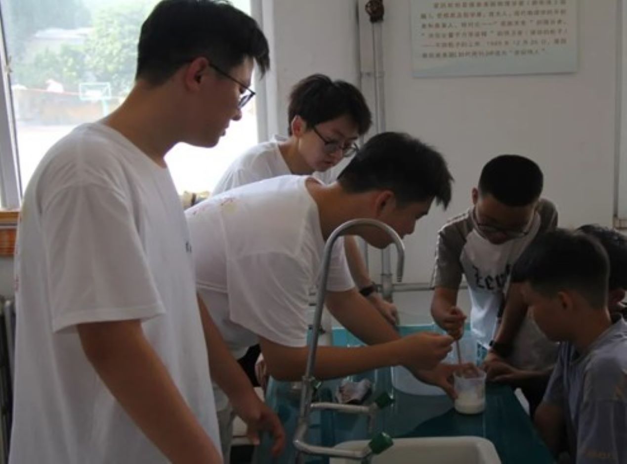 圖為動力系志愿者帶領同學們制作“非牛頓流體”實驗。