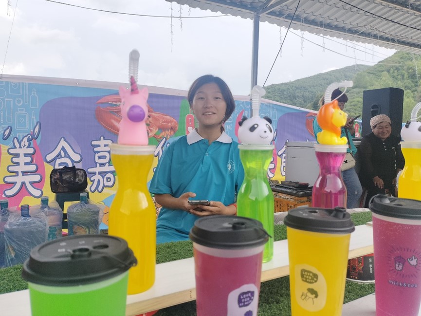 圖為民俗文化節(jié)期間團隊成員幫助村民商戶吸引游客。趙紫嬌 供圖