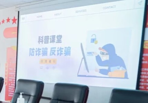 圖為實踐隊員向社區(qū)居民宣傳防詐騙知識的PPT。