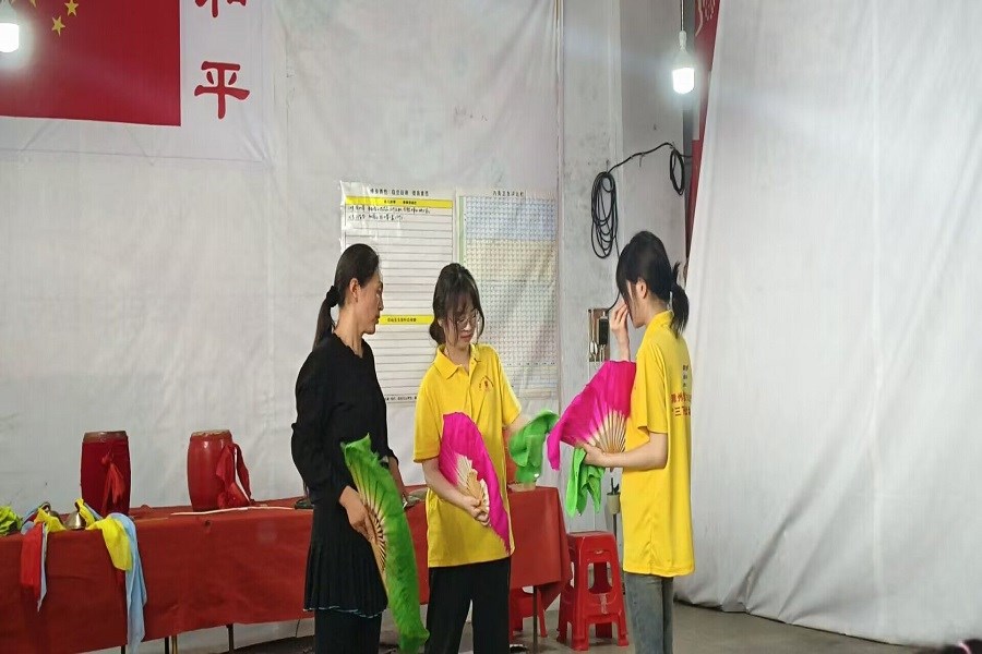圖為在老師的指導(dǎo)我們學(xué)習(xí)一些花鼓燈的動作
