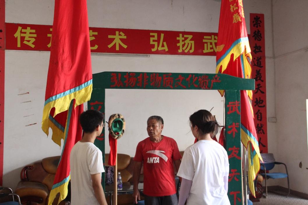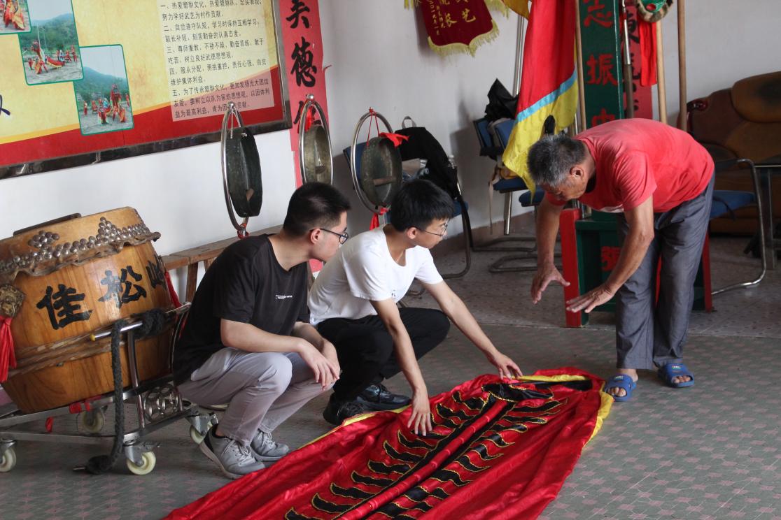 隨后,在村干部的帶領(lǐng)下,地理科學(xué)學(xué)院熠啟服務(wù)隊(duì)前往佳松嶺貔貅培訓(xùn)基地實(shí)地調(diào)研,這是廣東省非物質(zhì)文化遺產(chǎn)傳承基地,也是當(dāng)?shù)乇4婧蛡鞒絮魑幕闹匾獔?chǎng)所。在基地里,服務(wù)隊(duì)見(jiàn)到了佳松嶺貔貅的第五代掌門(mén)人——張永木師傅。張永木師傅詳細(xì)介紹了貔貅的歷史淵源和文化內(nèi)涵:“貔貅作為中國(guó)古老的傳統(tǒng)文化之一,具有辟邪驅(qū)鬼、保護(hù)家宅的寓意。我們的祖輩曾說(shuō)貔貅是神獸,能帶來(lái)好運(yùn)和祥瑞,所以在重大節(jié)日或喜慶時(shí)刻,我們都會(huì)舞貔貅來(lái)祈福。舞貔貅是我們村最重要的非物質(zhì)文化遺產(chǎn)之一,代代相傳,因此我們也希望讓更多的人學(xué)習(xí)和傳承這門(mén)文化。”