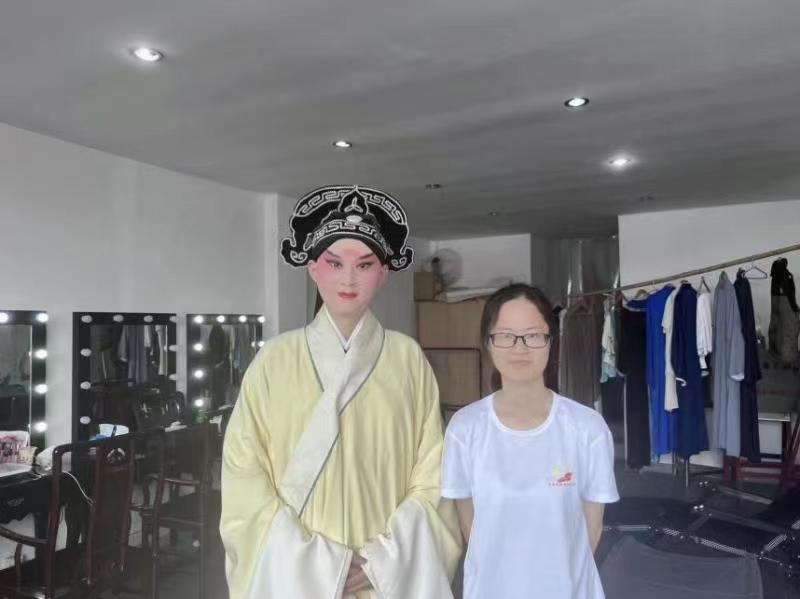 表演結(jié)束后,團(tuán)隊(duì)成員來到后臺,采訪了兩位演員。其中,飾演杜麗娘的是鄒美玲,飾演柳夢梅的是黃朱雨,他們都是來自昆山當(dāng)代昆劇院的優(yōu)秀青年演員,表演功底深厚,甚至一舉一動(dòng)都帶著昆曲那種不緊不慢,風(fēng)流內(nèi)蘊(yùn),給人一種人即是景,人即是物的感覺。