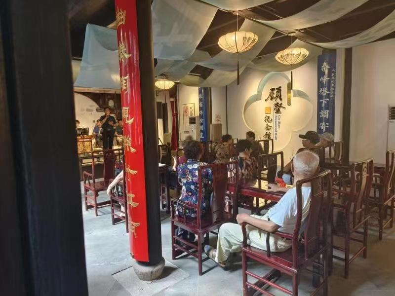 (圖為游客在顧堅(jiān)紀(jì)念館欣賞昆曲評彈 查嘉麗 攝)