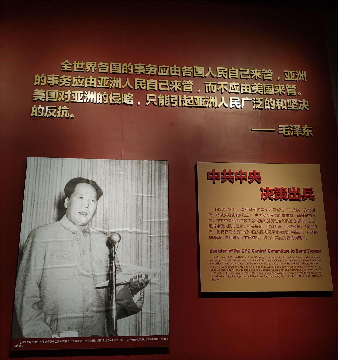 在這片紅色土地下,孕育了無數(shù)革命志士,他們懷著滿腔的熱血,報以最深厚的愛于這片土地。他們中有些犧牲于此,但是他們的精神不會消亡。一代又一代革命人士接過時代的交接棒,傳承紅色精神。重溫抗美援朝紀念館后,我深刻的感受到了革命先輩們英勇斗爭,不畏強敵的中華民族紅色革命精神。在74年前,我們書寫了一段中華民族反抗外敵的歷史,F(xiàn)在,這段歷史在時代潮流有了更多的意義。我國正處于中華民族偉大復興關鍵時期,個人堅定了知難而進,堅韌向前這一抗美援朝精神。