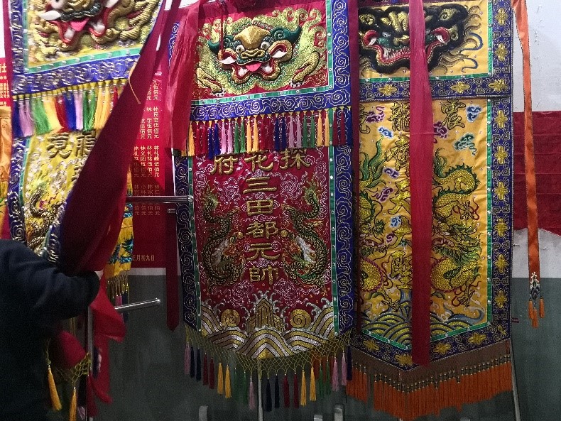 游行開(kāi)始時(shí),隊(duì)伍成員跟隨著隊(duì)伍在村間小路上行進(jìn)。整個(gè)游神的隊(duì)伍,就像是一條五彩斑斕的巨龍,蜿蜒在鄉(xiāng)村之間。