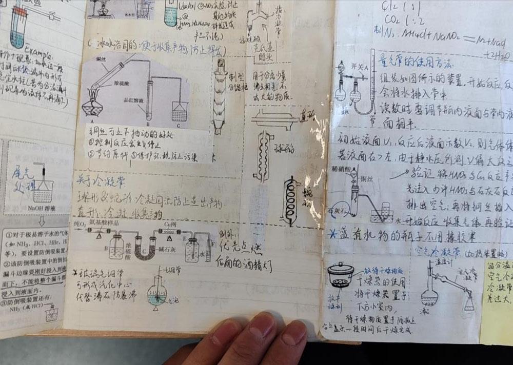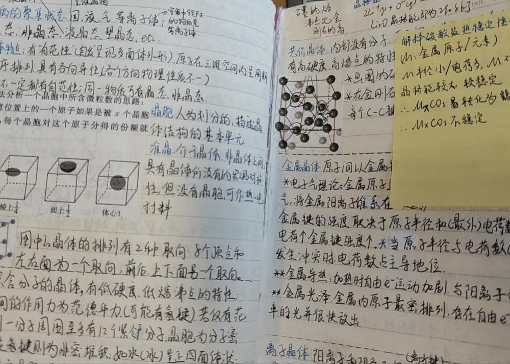 對于做筆記的問題,陳虹宇說,化學(xué)知識點(diǎn)非常稀碎,不容易記憶,也不容易串起來;此外,很多概念,如同位素、同系物、同素異形體等,非常容易混淆。因此,老師介紹了分區(qū)塊整理筆記的方法,將知識點(diǎn)分為實(shí)驗(yàn)專題、中國古代化學(xué)等專題,解決了知識點(diǎn)記不住的問題;此外,尤其要注意對基礎(chǔ)概念的記憶,最最基本的地方容不得絲毫馬虎。