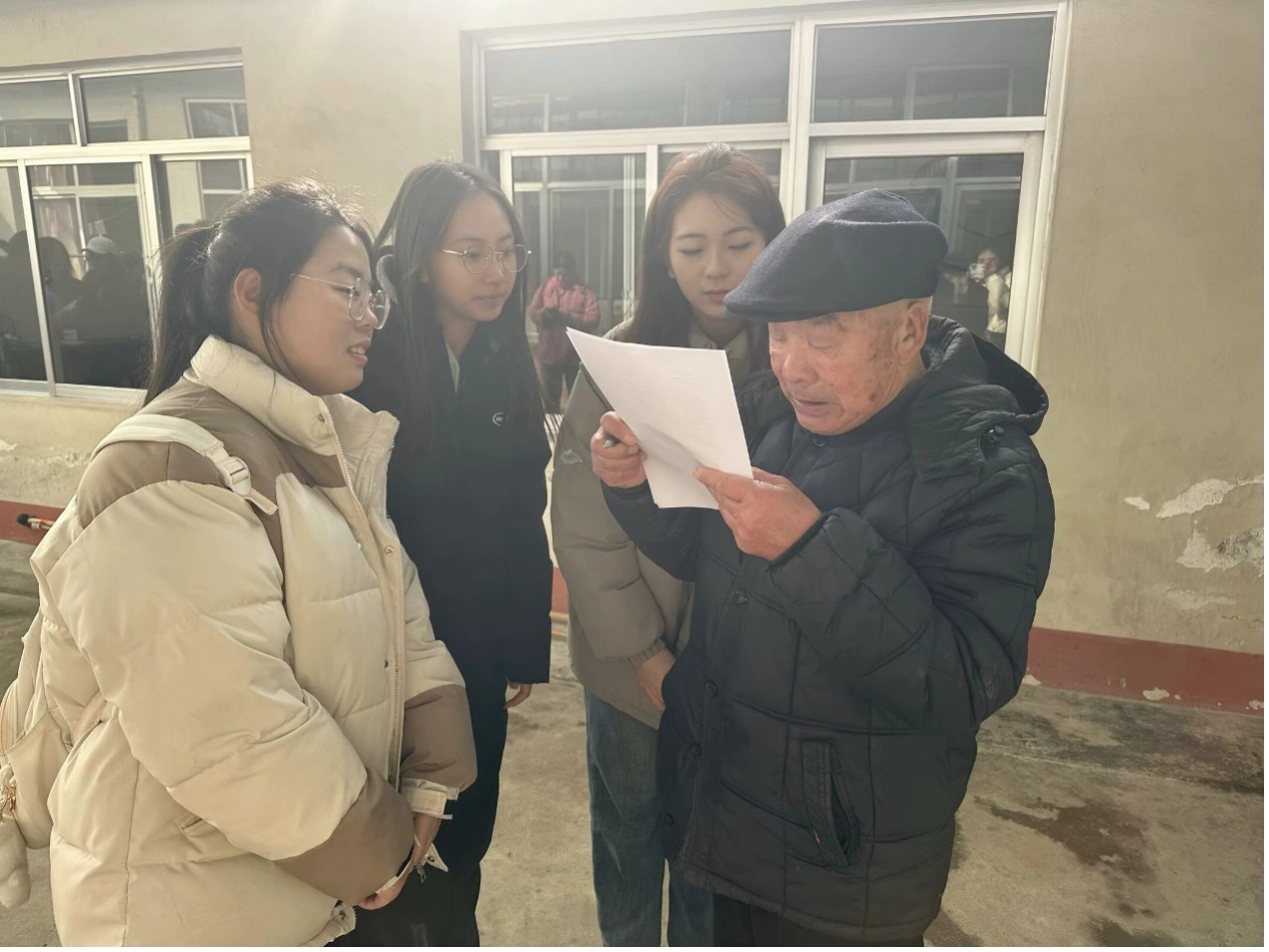圖為實踐隊員對村民的走訪調查,基本了解生態(tài)振興對村民生活的影響情況。  中國青年網通訊員 吳敏 供圖