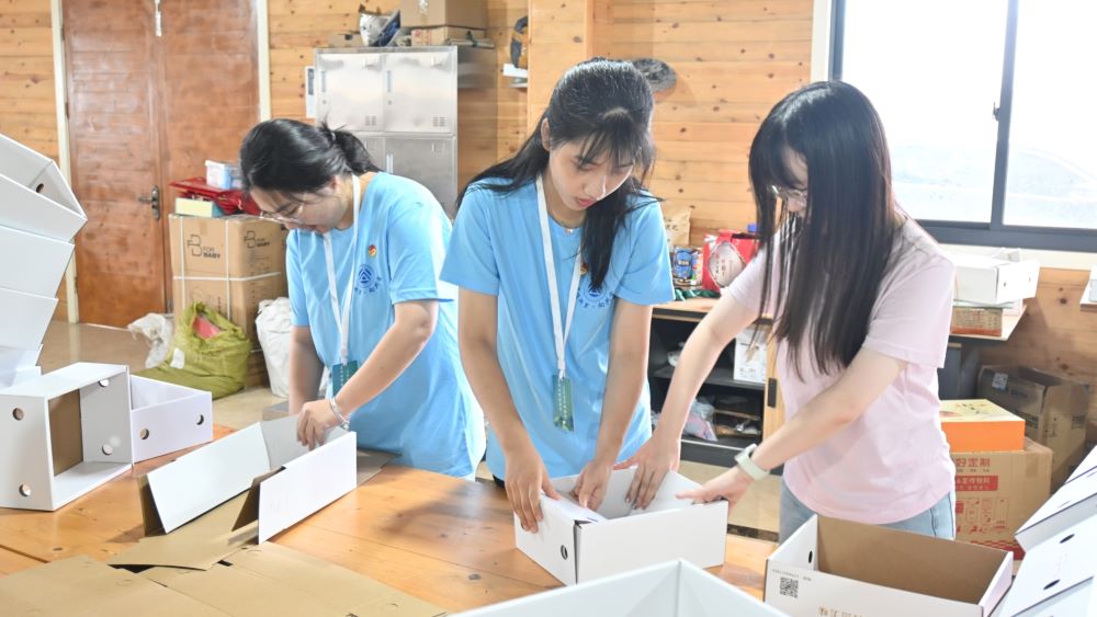 支隊成員在紫星葡萄園協(xié)助制作紙箱包裝