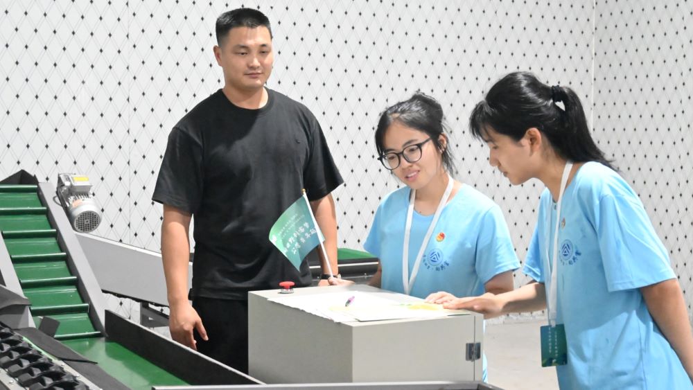 公共管理學(xué)院“青”耘慈溪,“春”耕有我實踐支隊操作蜜梨篩選機器