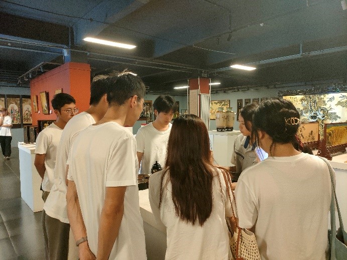 隨后,實(shí)踐隊(duì)員們還參觀了來(lái)自全國(guó)各地國(guó)家級(jí)、省級(jí)工藝美術(shù)大師的精品展覽。在這里,他們看到了描金彩繪、三金三彩、堆鼓罩漆等多種技藝的完美結(jié)合,感受到了平遙推光漆器古樸典雅、富麗絢美的藝術(shù)特色。其中,由國(guó)家級(jí)非遺傳承人薛生金先生創(chuàng)作的《百貓戲春圖》更是成為了展覽的亮點(diǎn)之一,其細(xì)膩的筆觸和生動(dòng)的形象贏得了隊(duì)員們的一致好評(píng)。