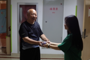 中醫(yī)經(jīng)絡(luò)養(yǎng)生操是根據(jù)傳統(tǒng)中醫(yī)學(xué)經(jīng)絡(luò)理論編創(chuàng)的養(yǎng)生體操。講究寧神調(diào)息,氣沉丹田,活動舒緩,達(dá)到強身健體、疏通筋絡(luò)而延年益壽的功效。為增強老年人體質(zhì),宣講隊員進行了中醫(yī)健身操的示范與講解。
