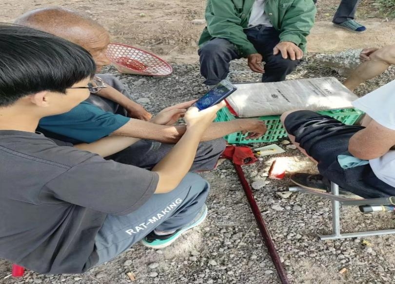 圖片3:團隊成員幫助中老年人群下載反詐騙應用程序,提高他們的防范意識。中國青年網通訊員 高鵬宇供圖