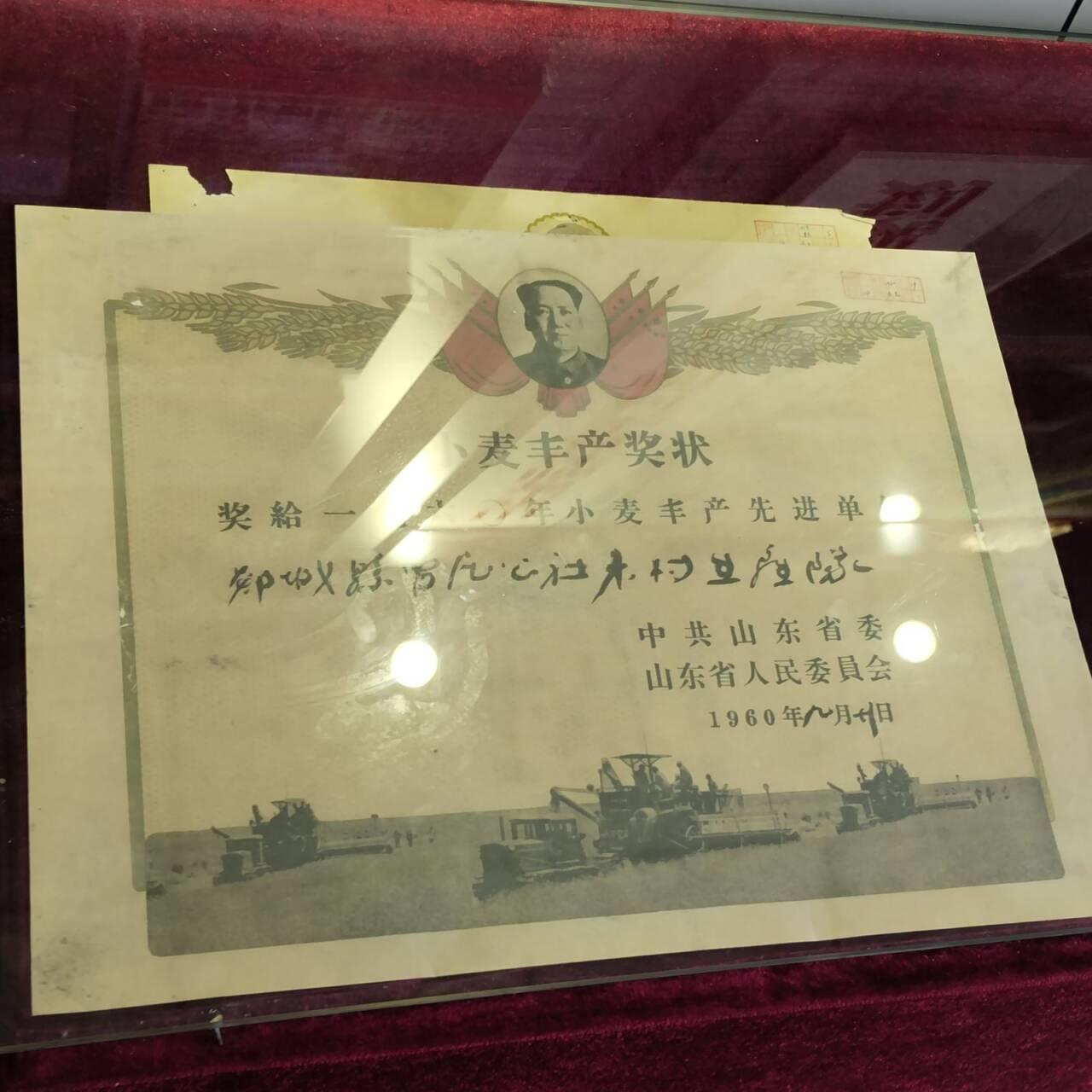 圖為朱村所獲得的小麥豐產(chǎn)獎(jiǎng)狀。中國(guó)青年網(wǎng)通訊員 周冰茹 攝