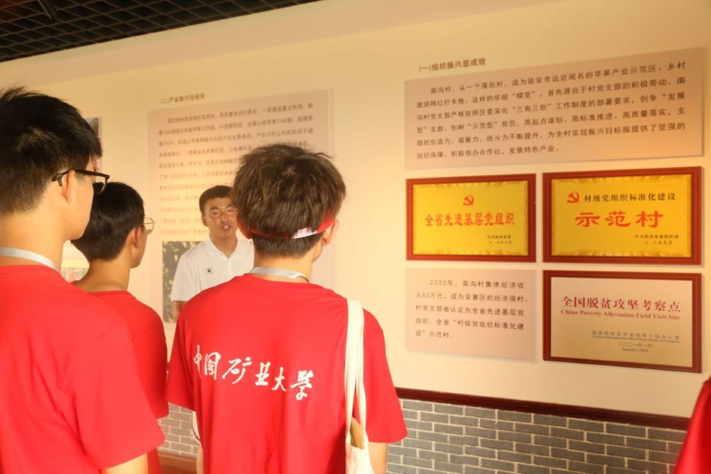 為深入感受延安革命精神依托下延安新農(nóng)村發(fā)展現(xiàn)狀,探尋鄉(xiāng)村脫貧摘帽歷程,7月22日,中國礦業(yè)大學(xué)“礦大行者,再煥圣地新榮光”暑期社會實踐團來到南溝村現(xiàn)代農(nóng)業(yè)展示區(qū)開展調(diào)研實踐活動。