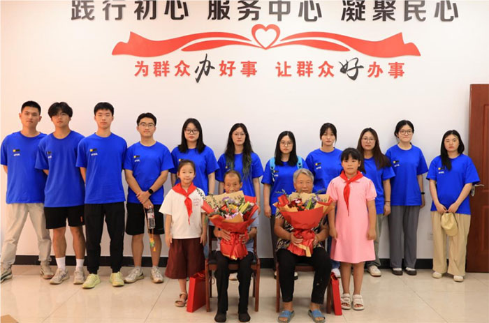 在百前村村委調(diào)研結(jié)束后,團(tuán)隊(duì)隊(duì)員們還和小朋友們一起為村里“在黨50年”老黨員代表和退役士兵代表獻(xiàn)上鮮花和禮物并致以崇高敬意。