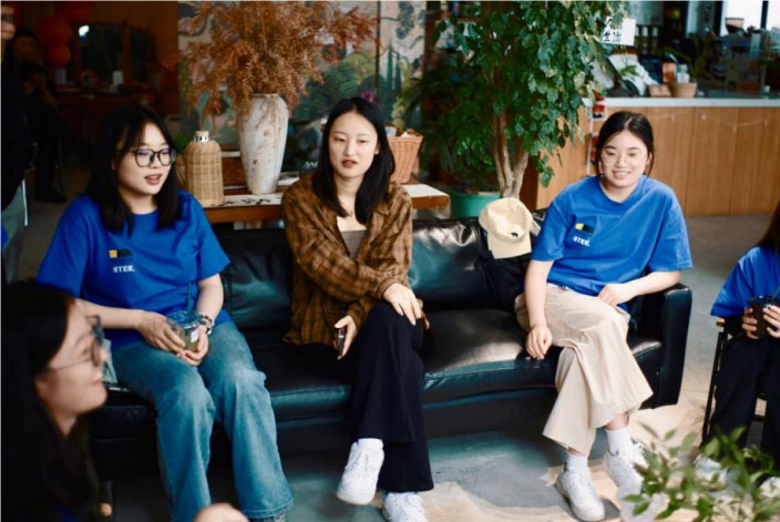 團(tuán)隊(duì)成員在“老廠房”咖啡館于青年創(chuàng)客交流  徐源攝