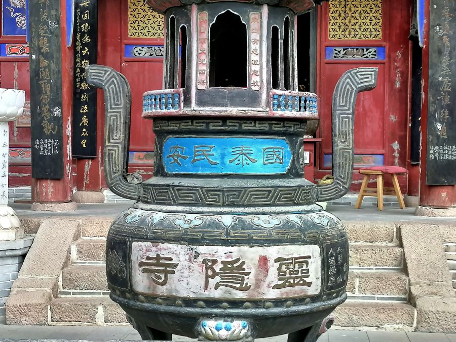 靈應(yīng)寺作為整個(gè)西崖的核心,在殿前矗立著一座三米高的寶塔,極其莊嚴(yán)、肅穆。實(shí)踐團(tuán)成員觀察到寶塔的塔身上刻著“國(guó)泰民安”四個(gè)大字。“靈應(yīng)”意為愿望成真,僧人將“國(guó)泰民安”的寶塔放于“靈應(yīng)”之下,表達(dá)了寺院對(duì)于中華民族的美好祝愿。
