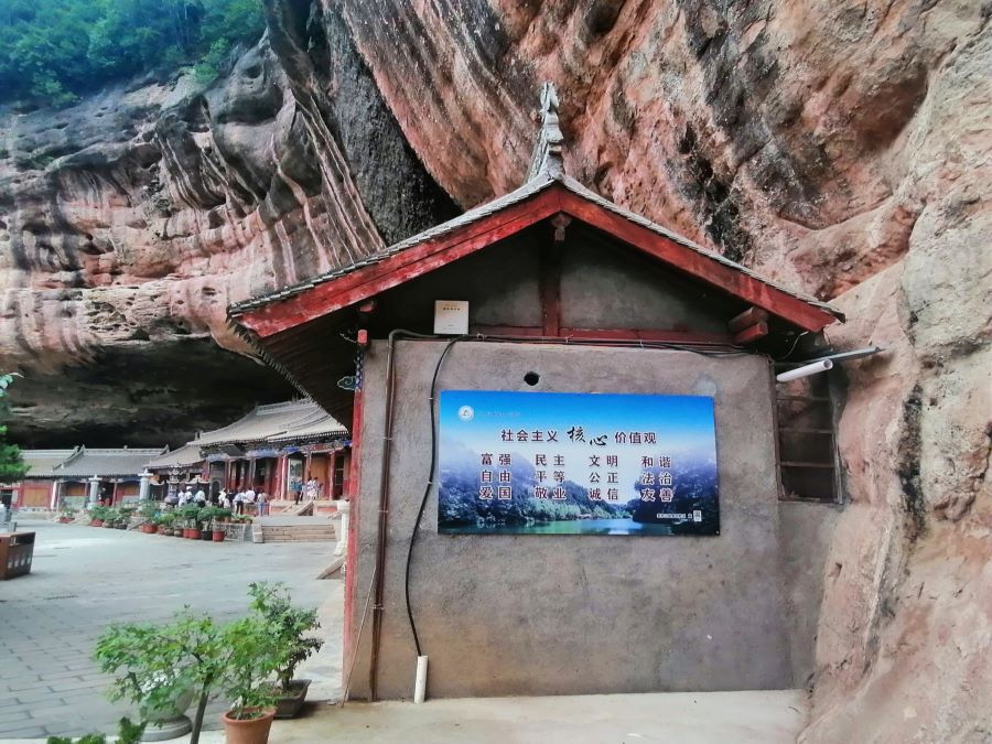 社會(huì)主義核心價(jià)值觀根植于中華優(yōu)秀傳統(tǒng)文化,彰顯中華文明的先進(jìn)基因。西崖的灰墻上印有“富強(qiáng)、民主、文明、和諧……”的二十四字宣傳語(yǔ)。文化不能墨守成規(guī)、因循守舊,要緊跟時(shí)代、創(chuàng)新發(fā)展。仙人崖石窟在保留原有特色的基礎(chǔ)上,唱響新時(shí)代主旋律。