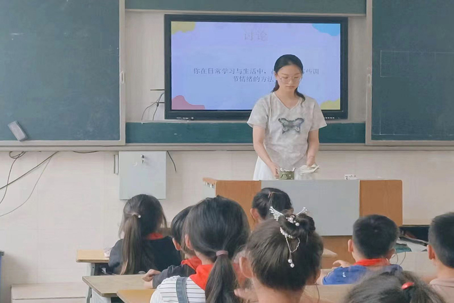 實踐團(tuán)成員進(jìn)行第一次“認(rèn)識情緒”課程