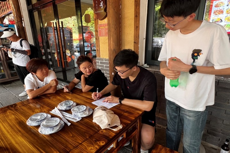 圖 6為團(tuán)隊(duì)成員在與望仙谷一民宿老板交流當(dāng)?shù)丨h(huán)境治理舉措 蔡趙浩攝