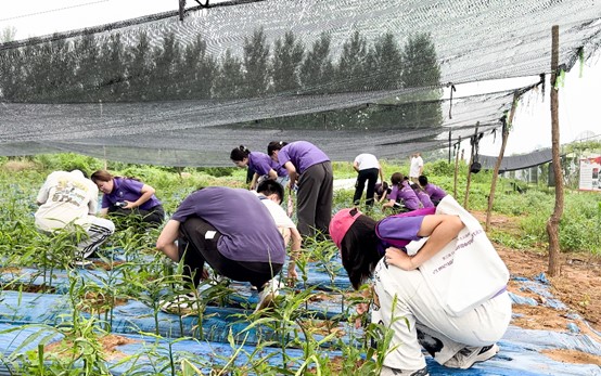 7月9日清晨,團隊成員前往眾得利農(nóng)場,走進田間地頭,村民們介紹了生姜的生長習性和除草的注意事項。成員們每人認領一壟,參與除草工作。在勞作中,大家不僅學會了如何區(qū)分生姜與雜草,更深刻體會到了農(nóng)業(yè)生產(chǎn)的辛勤與不易。隨后,團隊來到壽光市首航果蔬專業(yè)合作社,參觀了解現(xiàn)代農(nóng)業(yè)溫室的發(fā)展及現(xiàn)代技術的種植模式。