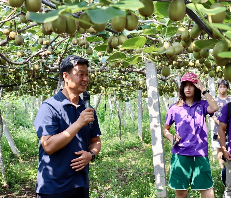 7月10上午,團隊前往獼猴桃種植基地——淄博市博山區(qū)源泉鎮(zhèn)。源泉農(nóng)業(yè)以種植業(yè)為主,形成了以林果、蔬菜、中藥材、水產(chǎn)養(yǎng)殖、畜牧養(yǎng)殖等為主的農(nóng)業(yè)結構,充分發(fā)揮獼猴桃等特色農(nóng)業(yè)的優(yōu)勢。隨后,師生一行來到源泉古村落,在千年槐樹下聆聽源泉鎮(zhèn)鄉(xiāng)村振興故事。