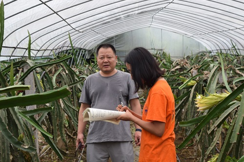 采摘間隙,實踐團成員與曾強先生進行了深入交流,就火龍果的種植技術、病蟲害防治、市場營銷策略等方面進行了細致探討。這種面對面的交流不僅加深了實踐團對現(xiàn)代農(nóng)業(yè)產(chǎn)業(yè)化的認識,也為他們未來的學術研究與社會實踐提供了寶貴的素材和靈感。