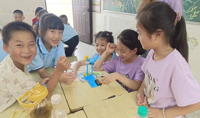 本次課程的主題主要分為探索科學(xué)家精神、體驗(yàn)傳統(tǒng)非遺文化、學(xué)習(xí)各方面安全知識(shí)。旨在引導(dǎo)孩子深入了解中國(guó)非遺文化,學(xué)習(xí)并感受為祖國(guó)做出偉大貢獻(xiàn)的科學(xué)家的付出,激發(fā)愛(ài)國(guó)情懷,培養(yǎng)人生理想。孩子們對(duì)本次課程極富興趣,教室里歡聲笑語(yǔ)不斷,志愿者和孩子們稚嫩的臉龐構(gòu)成了修水縣一道獨(dú)特的風(fēng)景線。孩子們動(dòng)手組裝了“單杠機(jī)器人”,并且探索了鄧稼先、楊振寧等先輩的科學(xué)家精神。并且學(xué)會(huì)了在自然災(zāi)害、心理健康、網(wǎng)絡(luò)安全等五個(gè)方面遠(yuǎn)離潛在風(fēng)險(xiǎn)。