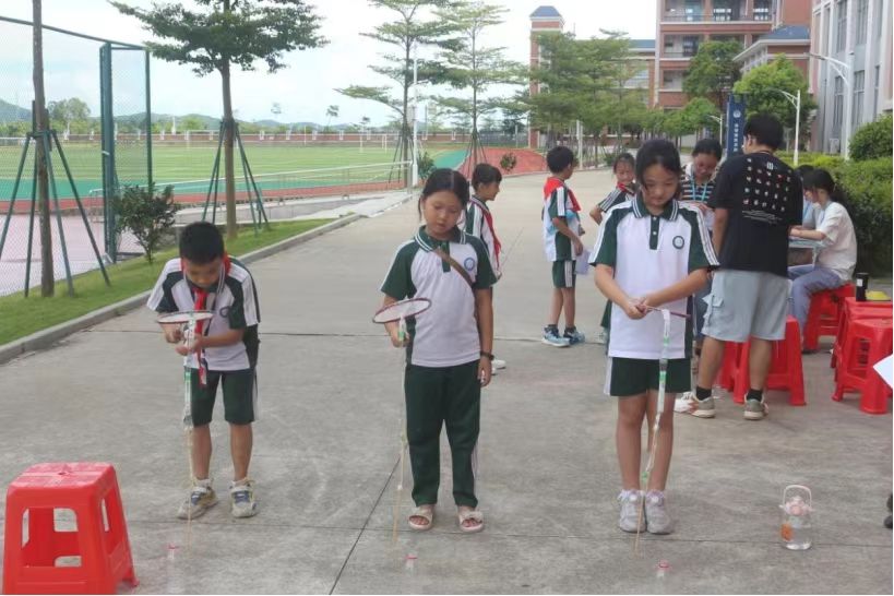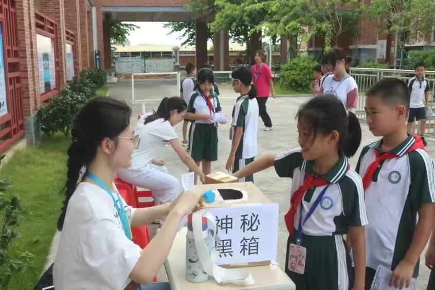 隨著夏日的腳步逐漸臨近,華南師范大學(xué)書畫協(xié)會流墨實踐服務(wù)隊于2024年7月19日在廣東省陽江市南華實驗學(xué)校舉辦了一場主題為“趁盛夏,一起出發(fā)吧!”的夏日游園會活動,結(jié)合體育、語文等多學(xué)科的互動游戲方式,培養(yǎng)學(xué)生全方位的審美素養(yǎng),促進學(xué)生在自由游玩的過程中,深入體驗美的內(nèi)涵,激發(fā)他們對美的感知、欣賞和創(chuàng)造能力。同時,通過采取團隊與個人的游戲形式,增強學(xué)生的團隊協(xié)作精神和競爭意識。