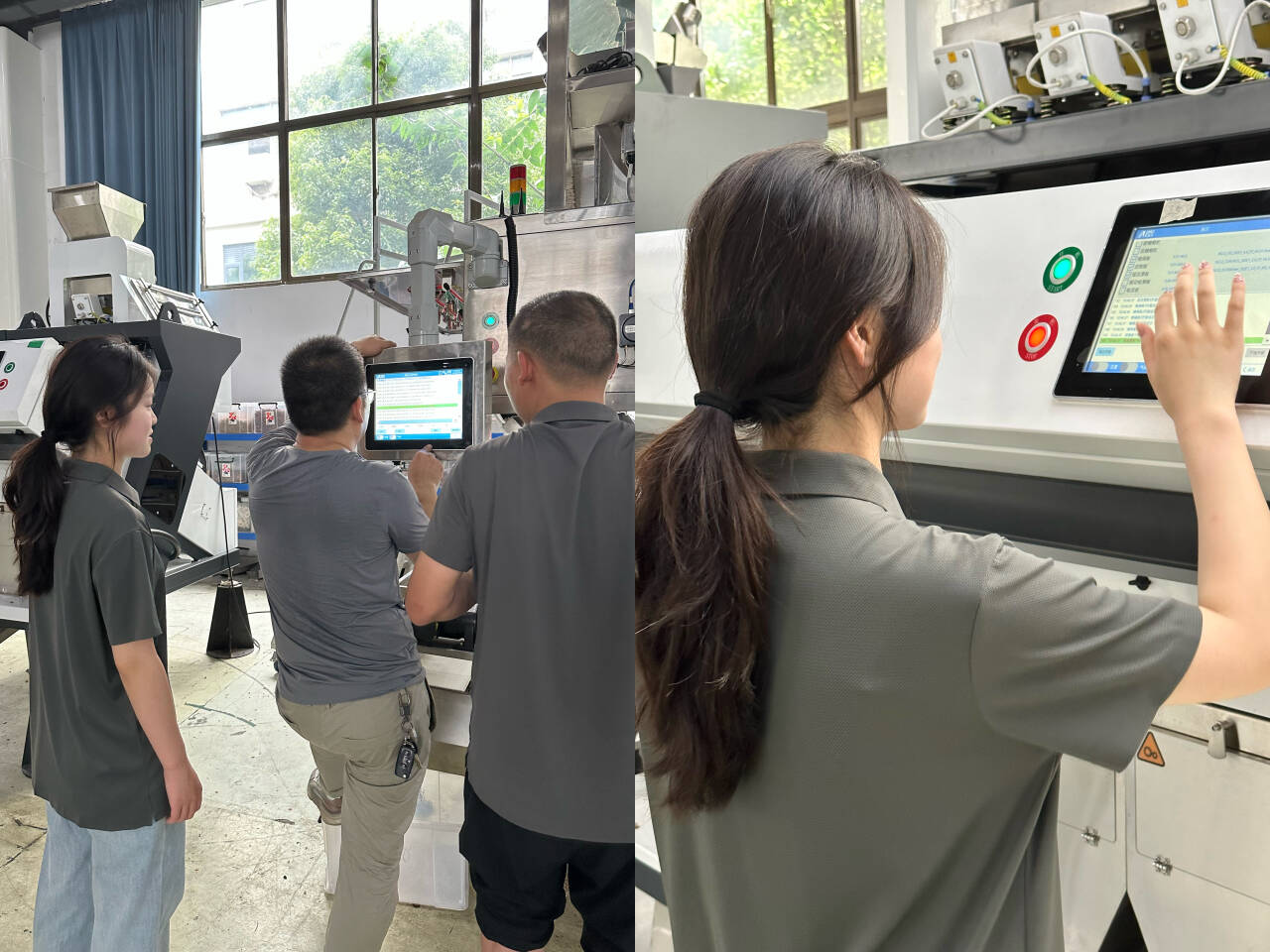 在小隊(duì)分配完任務(wù)后,實(shí)習(xí)分隊(duì)成員展開(kāi)了企業(yè)實(shí)踐活動(dòng)。在揚(yáng)州中天醫(yī)藥有限公司,實(shí)習(xí)隊(duì)員負(fù)責(zé)制藥機(jī)械設(shè)備的定期維護(hù)和程序檢查,在確保生產(chǎn)設(shè)備正常運(yùn)行的同時(shí),還需要負(fù)責(zé)產(chǎn)品的出庫(kù)、入庫(kù)和庫(kù)存盤點(diǎn)工作;在安徽中科光電色選機(jī)械有限公司,實(shí)習(xí)隊(duì)員了解了企業(yè)文化和公司概況,并在深入學(xué)習(xí)了色選機(jī)的調(diào)試準(zhǔn)備等基礎(chǔ)知識(shí)后,運(yùn)用色選機(jī)進(jìn)行了物料調(diào)試和算法應(yīng)用等一系列操作;在西安賽鴻電子科技有限公司,實(shí)習(xí)隊(duì)員在公司人員的指導(dǎo)下,協(xié)助進(jìn)行了貼片設(shè)備操作與監(jiān)控、物料管理、貼片質(zhì)量檢測(cè)等工作,隊(duì)員們對(duì)自動(dòng)化貼片設(shè)備的生產(chǎn)加工也有了更清楚的認(rèn)知。