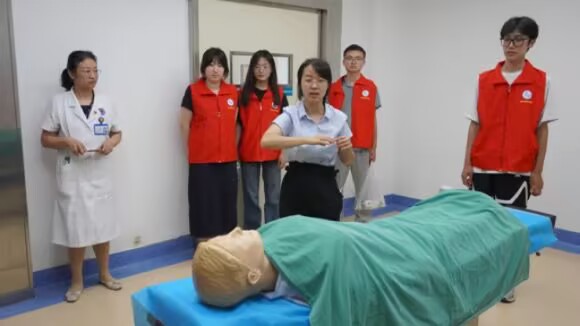 隨后,實(shí)踐團(tuán)參與臨床手術(shù)知識培訓(xùn)環(huán)節(jié)。在模擬手術(shù)室,醫(yī)護(hù)人員以高仿真手術(shù)假人為教具,細(xì)致講解一臺外科手術(shù)的完整流程,從術(shù)前消毒、器械準(zhǔn)備,到切口設(shè)計(jì)、組織分離,再到止血縫合、術(shù)后處理,每一個步驟都配合假人模型的解剖結(jié)構(gòu)進(jìn)行具象化演示。實(shí)踐團(tuán)成員圍站在操作臺周圍,認(rèn)真觀察醫(yī)護(hù)人員的操作流程。通過這種理論講解與假人模擬操作相結(jié)合的方式,同學(xué)們不僅直觀了解了手術(shù)的規(guī)范流程,更對醫(yī)療工作者嚴(yán)謹(jǐn)細(xì)致的職業(yè)素養(yǎng)有了深刻體會,為今后理解醫(yī)療服務(wù)流程積累了生動素材。