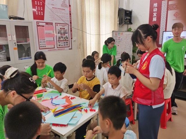 活動(dòng)尾聲,那重村的晚霞染紅了活動(dòng)室的窗欞,孩子們追著志愿者問“明天還來嗎”的身影,與墻上“鄉(xiāng)聚合力”的隊(duì)旗交相輝映。這一夏,我們用能量手環(huán)串起童心,用生日歌溫暖時(shí)光,更用行動(dòng)證明:當(dāng)高校力量與鄉(xiāng)土需求同頻共振,教育的星光便能照亮每一寸土地。活動(dòng)后實(shí)踐隊(duì)與村委召開總結(jié)會(huì),村支書表示,夏令營填補(bǔ)了鄉(xiāng)村兒童暑期教育的空白,希望未來能建立長效合作機(jī)制。隊(duì)員們則深刻體會(huì)到:“教育不僅是知識(shí)的傳遞,更是心靈的觸碰。我們被孩子們的純真治愈,也更加堅(jiān)定了投身基層的決心。”