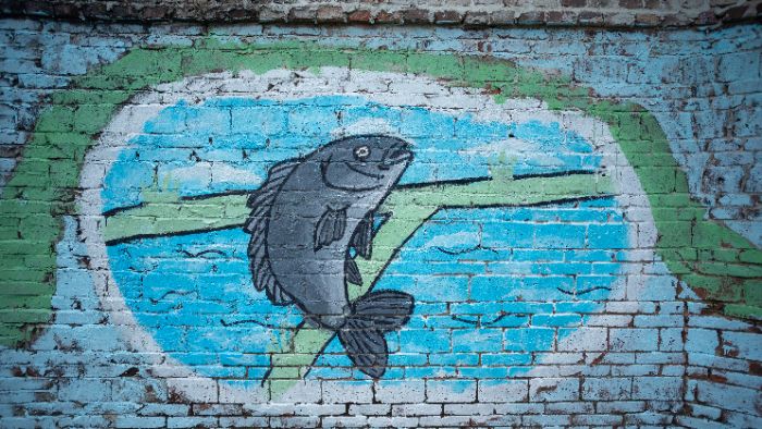 在循環(huán)水系統(tǒng)翻涌的碧波間,隊員俯身,指尖撫過現(xiàn)代化養(yǎng)殖池壁。那些跳躍的銀鱗與水流,終在墻繪上凝成 "科技富漁" 的藍色交響——羅非魚破墻而出。