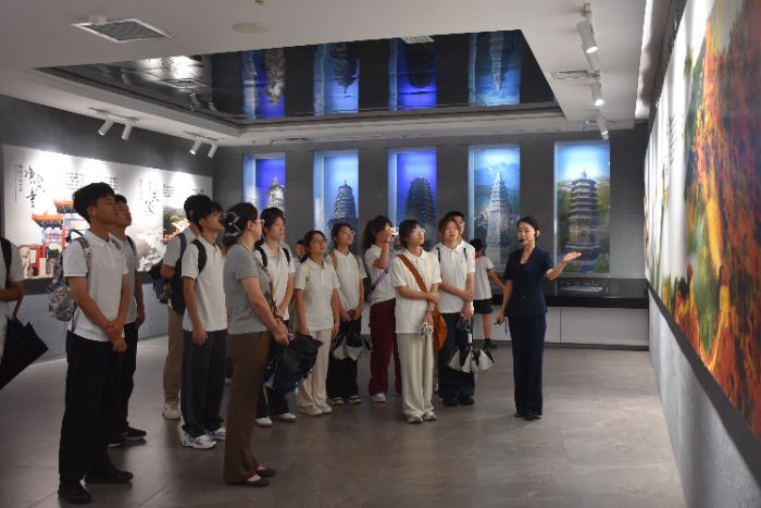 圖為實踐隊員聆聽專業(yè)講解(林偉航攝)
