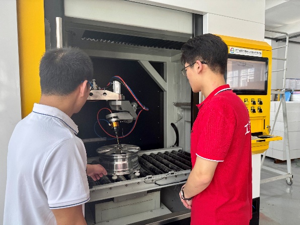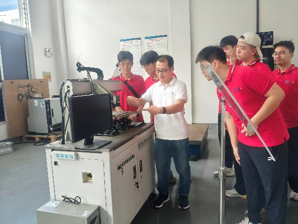 圖5:實踐隊員參觀學(xué)習(xí)打磨機(jī)器人