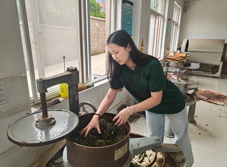 實踐團還進入制茶車間,學習了綠茶、紅茶等不同品類茶葉的加工工藝與機械設(shè)備操作。同學們在親身參與中,感受到生態(tài)種植模式對茶葉品質(zhì)的影響,也了解到消費者對綠色防控產(chǎn)品的認可度較高,產(chǎn)品在市場上具有一定溢價空間。