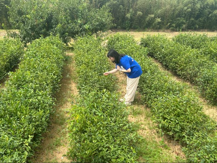 在談到茶葉品質(zhì)提升時,白總特意驅(qū)車前往茶園,向隊員展示由中國海洋大學(xué)汪東風(fēng)教授團(tuán)隊培育的高香白茶。她通過照片分享教授團(tuán)隊近年來多次深入綠春,在茶園管理、病蟲害防治及制茶工藝等方面進(jìn)行科研指導(dǎo)的經(jīng)歷。“他們教我們‘做青增香’技術(shù),讓白茶散發(fā)蘭花香和蜜韻,幫助300多戶茶農(nóng)實現(xiàn)增收。”實踐隊隊員還查閱了茶廠的培訓(xùn)記錄和技術(shù)筆記,從中感受到海大團(tuán)隊敬業(yè)奉獻(xiàn)、深耕產(chǎn)地的務(wù)實精神,也更加理解了“把論文寫在大地上”的深刻內(nèi)涵。