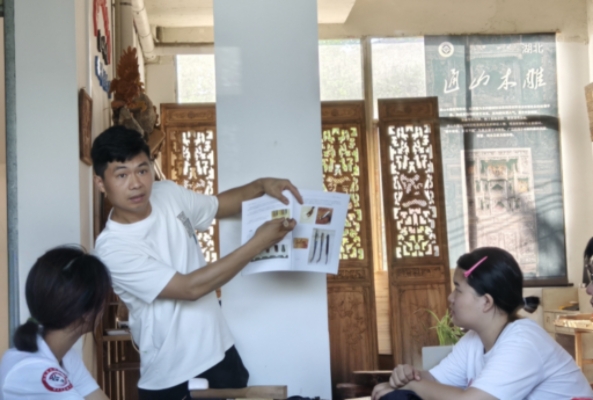 圖為傳承者成希老師為實(shí)踐隊(duì)講授通山木雕悠久歷史。通訊員 譚子露 攝