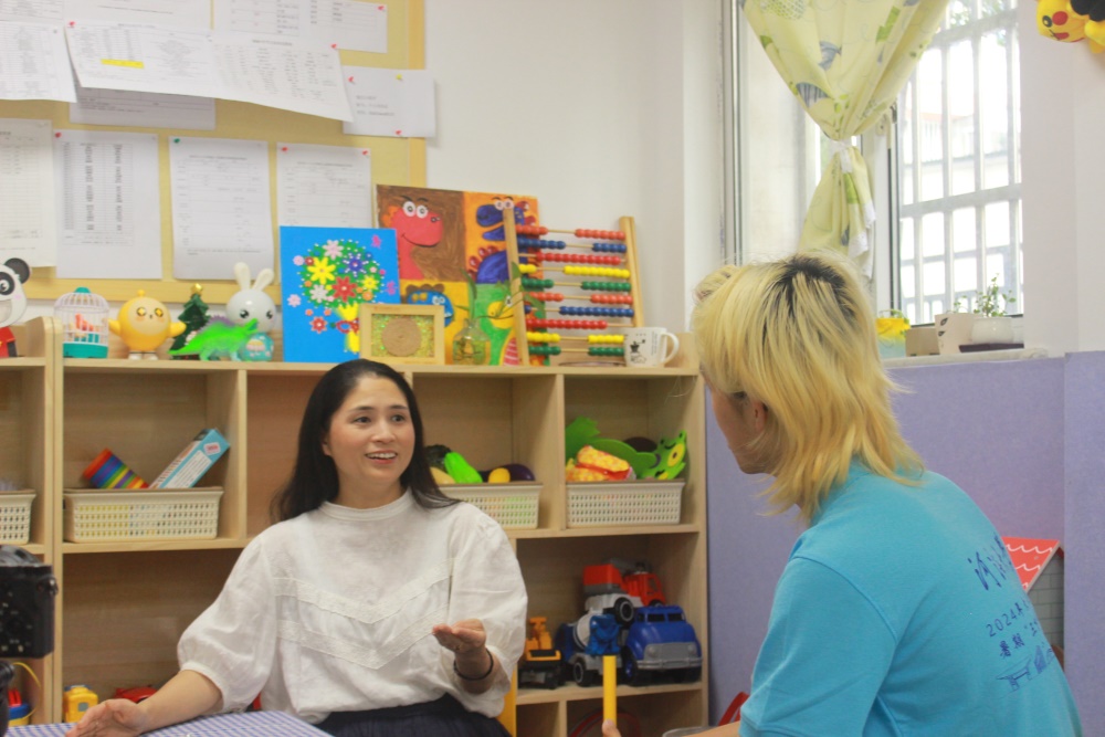 實踐團采訪天愛康復(fù)中心鄭校長(程彥銘 攝)